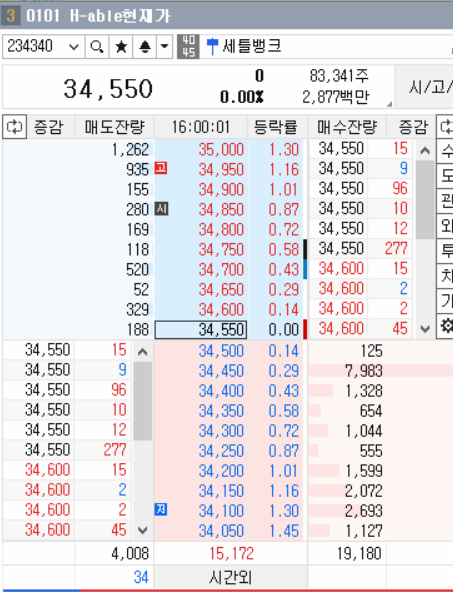 34,250원에 사겠다는 매수잔량은 550개이다.